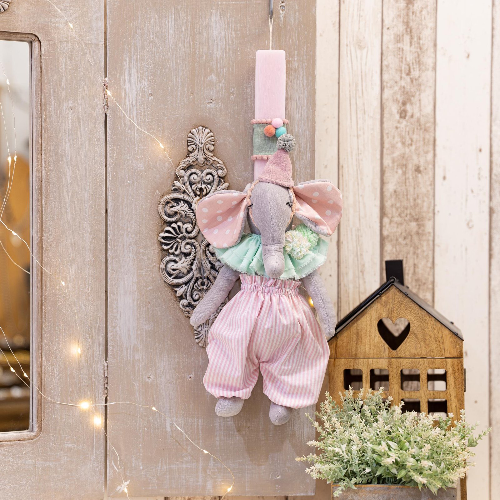 Παιδική λαμπαδα με χειροποίητη κούκλα στα 40 εκ.  περίπου, σε πλακέ αρωματικό κερί στα 34 εκ.