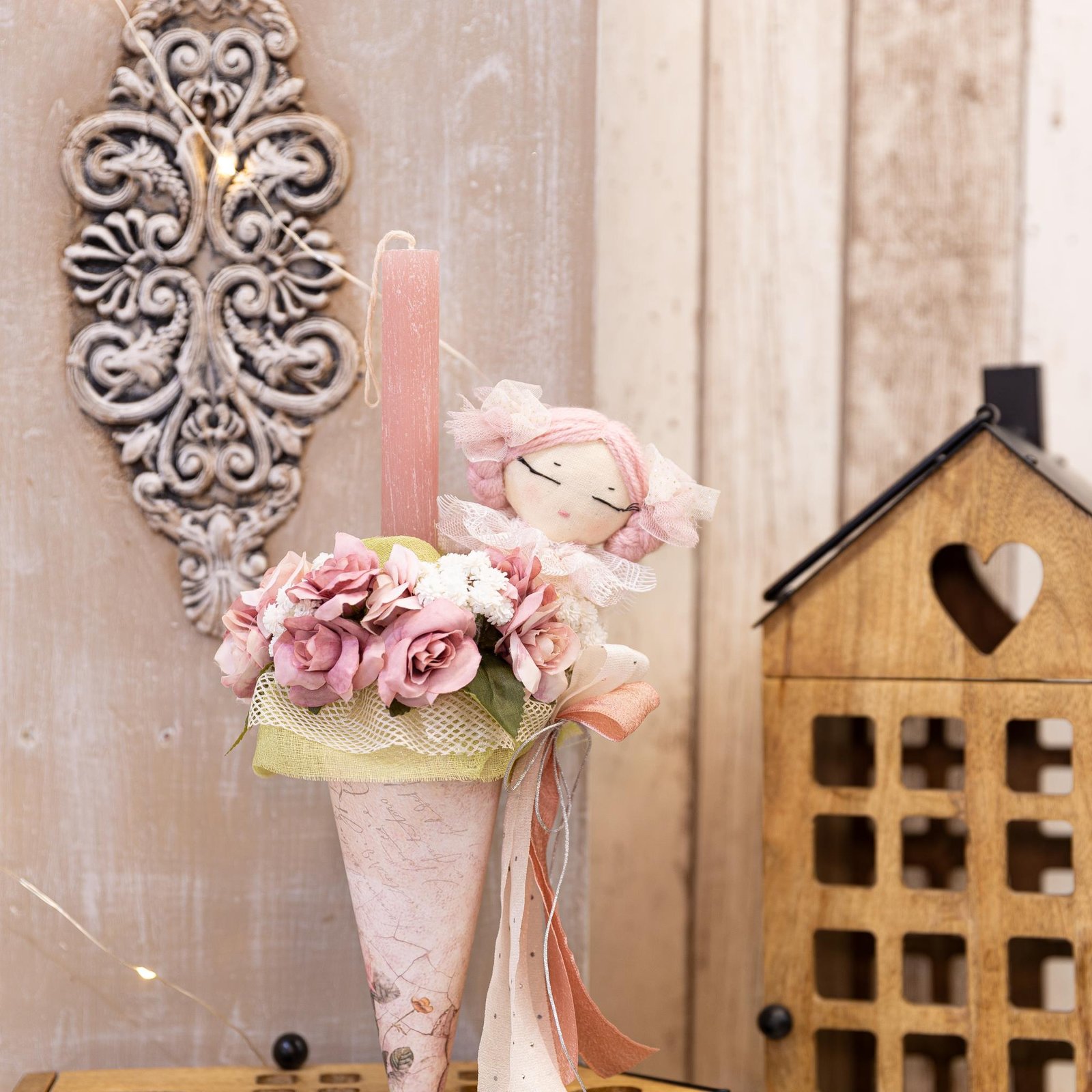 Παιδική λαμπαδα με χειροποίητη κουκλίτσα, με στρογγυλό αρωματικό κερί.