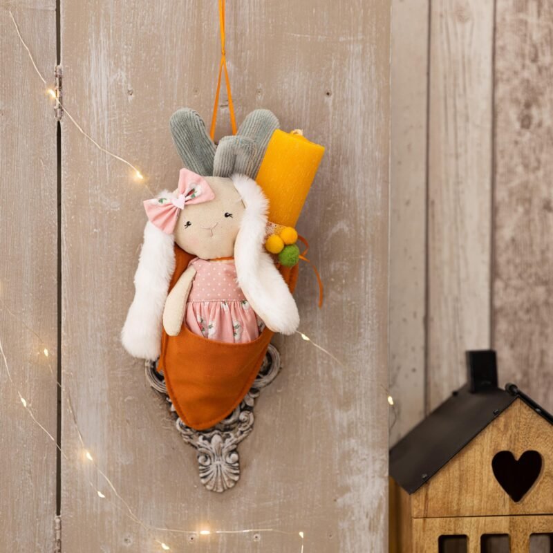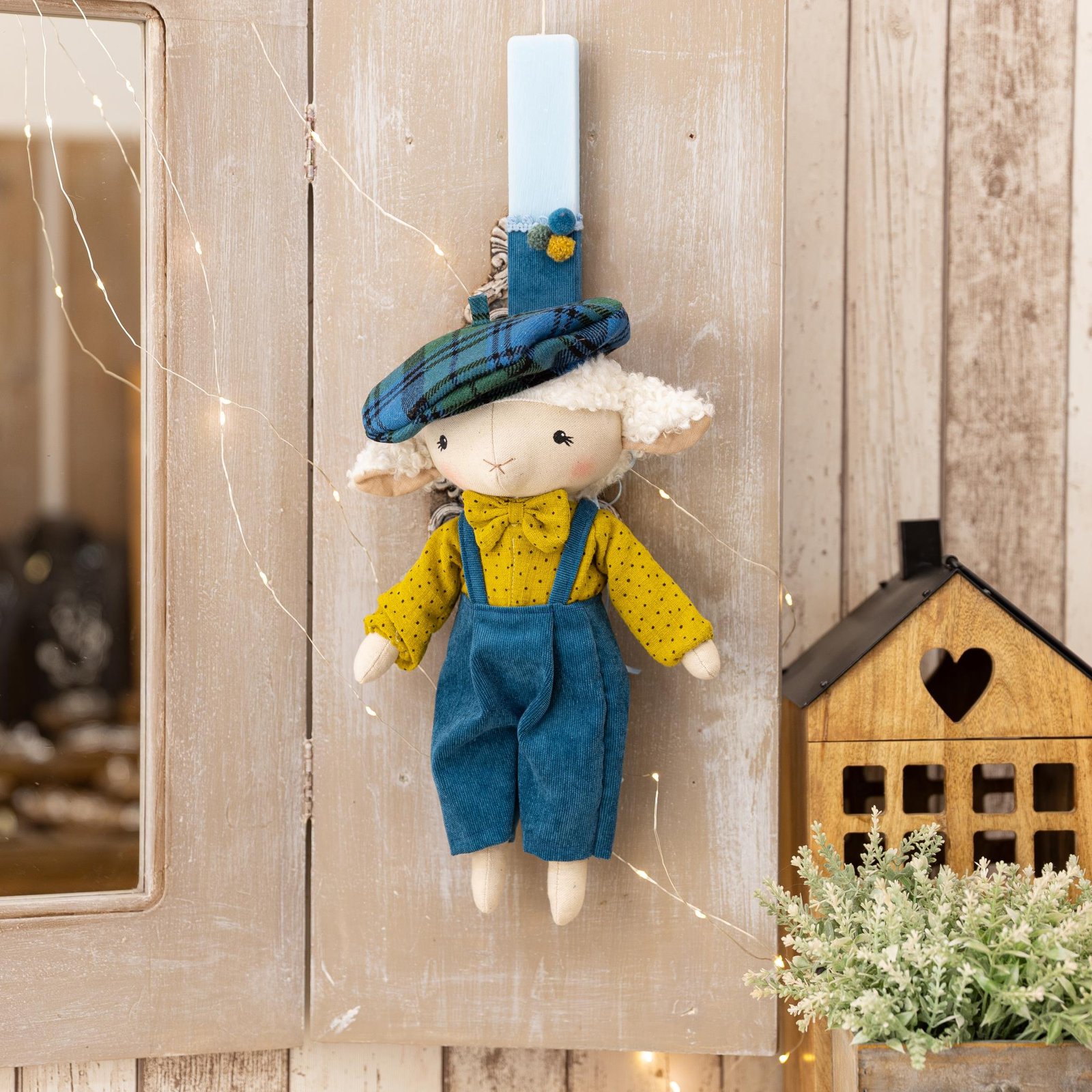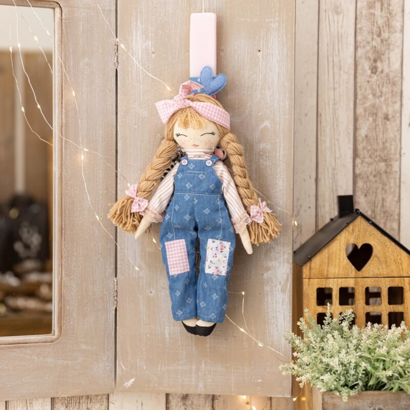 Παιδική λαμπαδα με χειροποίητη κούκλα στα 40 εκ. περίπου, σε πλακέ αρωματικό κερί στα 34 εκ.