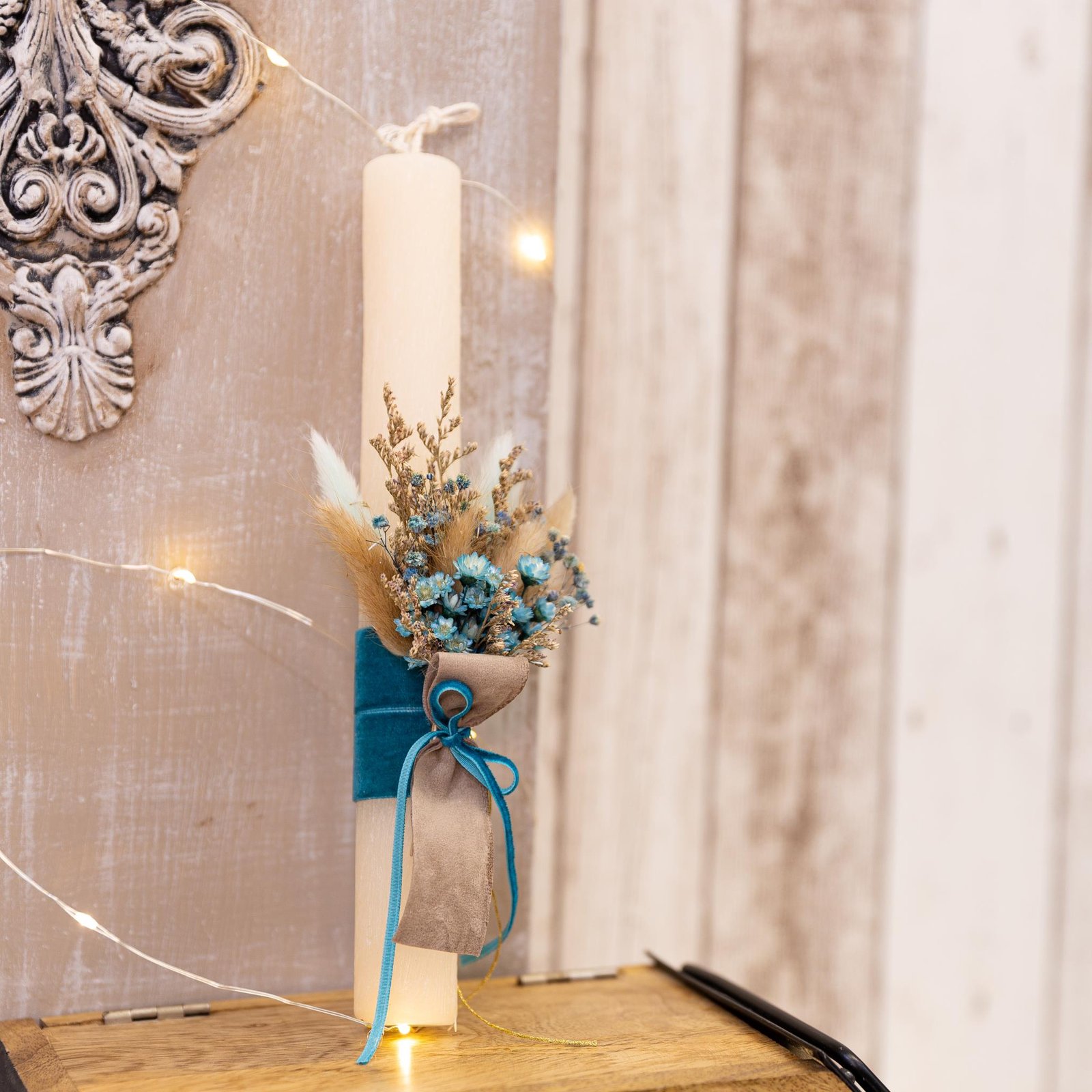 Χειροποίητη αρωματική λαμπάδα διακοσμημένη με αποξηραμένα λουλούδια στα 25 εκ.