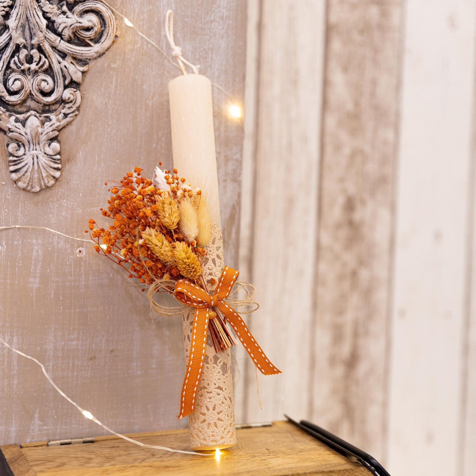 Χειροποίητη αρωματική λαμπάδα διακοσμημένη με αποξηραμένα λουλούδια στα 25 εκ.
