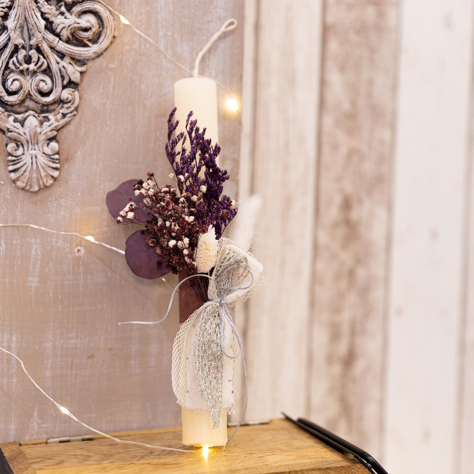 Χειροποίητη αρωματική λαμπάδα διακοσμημένη με αποξηραμένα λουλούδια στα 25 εκ.
