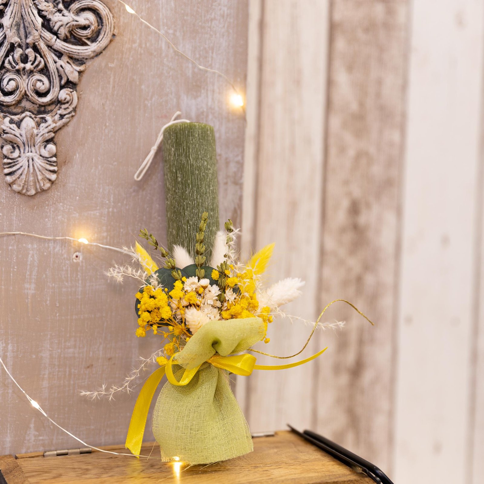 Χειροποίητη αρωματική λαμπάδα διακοσμημένη με αποξηραμένα λουλούδια στα 22 εκ.