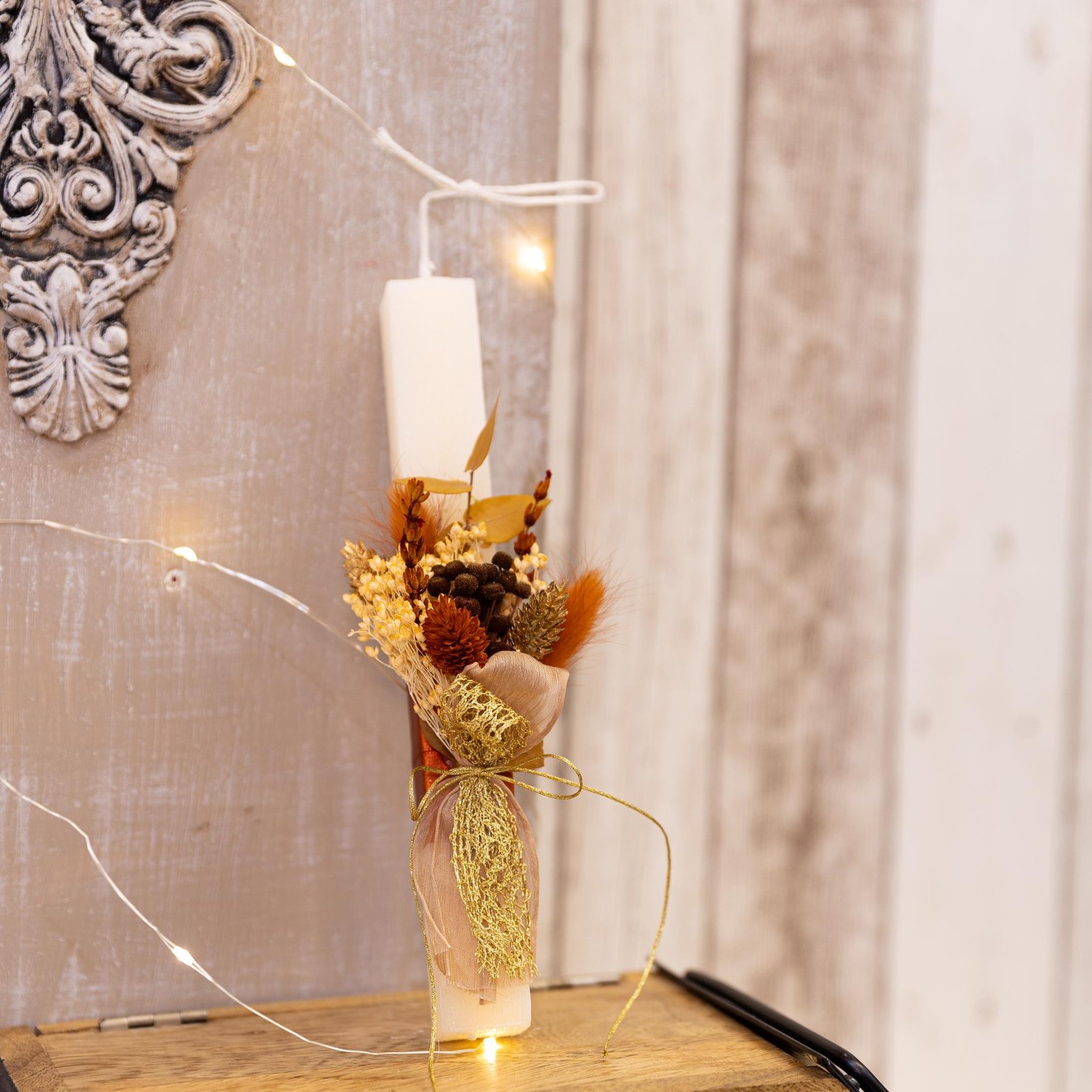 Χειροποίητη αρωματική λαμπάδα διακοσμημένη με αποξηραμένα λουλούδια στα 22 εκ.