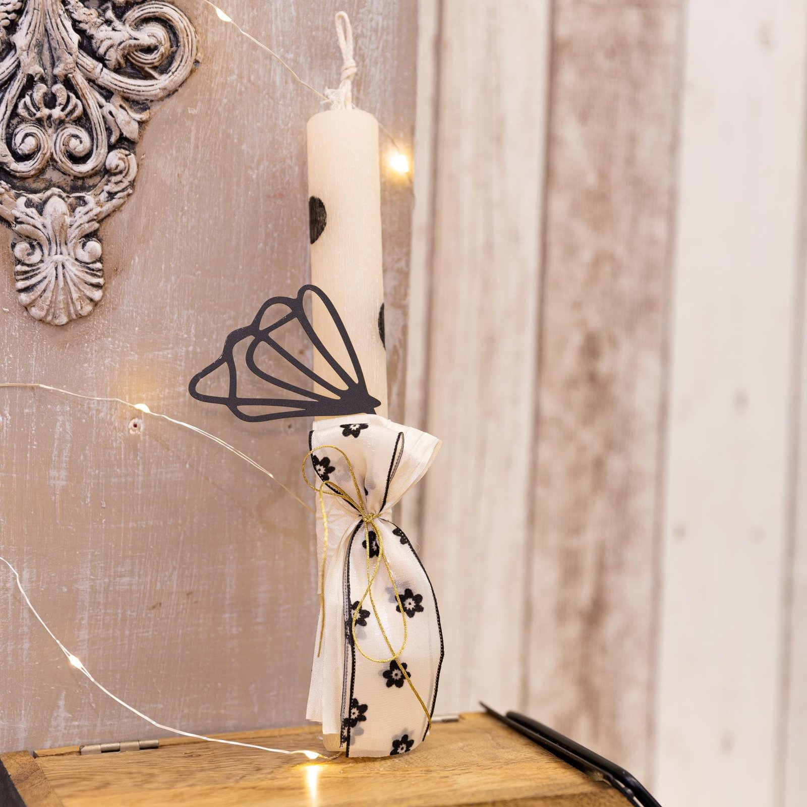 Χειροποίητη αρωματική λαμπάδα με μεταλλικο λουλούδι διακοσμημένη στα 25 εκ.