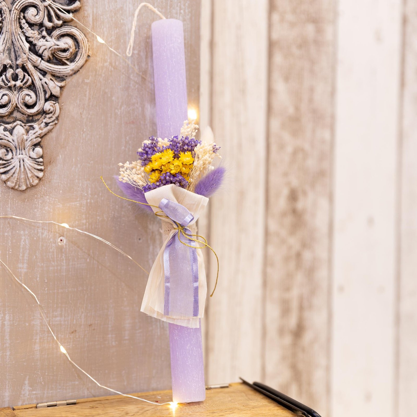 Χειροποίητη αρωματική λαμπάδα διακοσμημένη με αποξηραμένα λουλούδια στα 27 εκ.