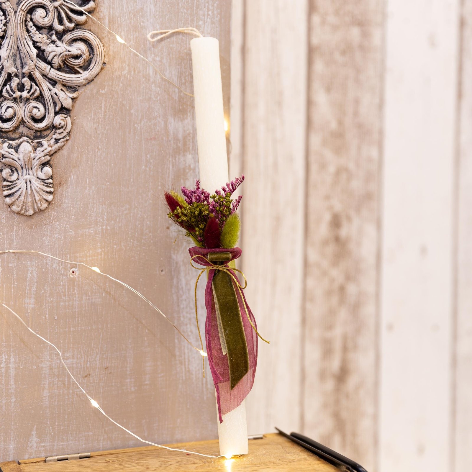 Χειροποίητη αρωματική λαμπάδα διακοσμημένη με αποξηραμένα λουλούδια στα 30 εκ.