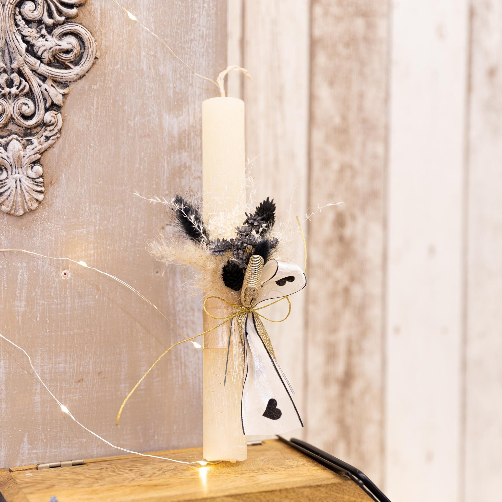 Χειροποίητη αρωματική λαμπάδα διακοσμημένη με αποξηραμένα λουλούδια στα 25 εκ.