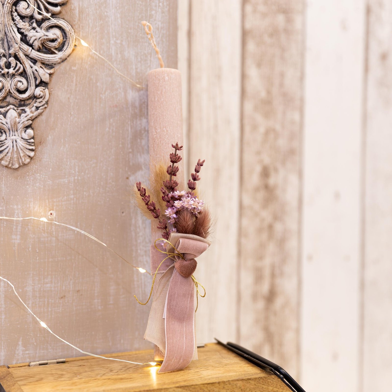 Χειροποίητη αρωματική λαμπάδα διακοσμημένη με αποξηραμένα λουλούδια στα 25 εκ.