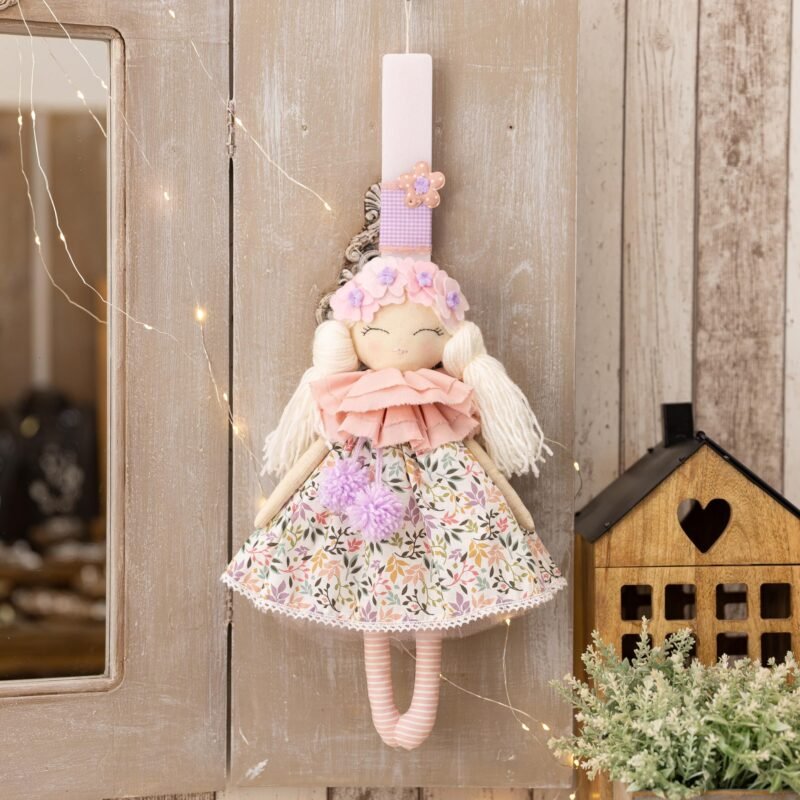 Παιδική λαμπαδα με χειροποίητη κούκλα στα 40 εκ.  περίπου, σε στρογγυλό αρωματικό κερί στα 34 εκ.